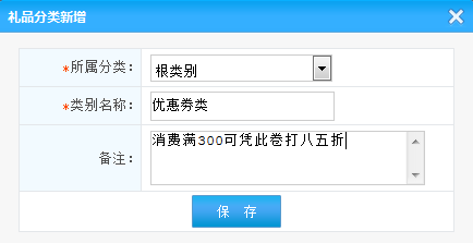 禮品分類(lèi)列表:展示系統(tǒng)中設(shè)置的所有的禮品分類(lèi)