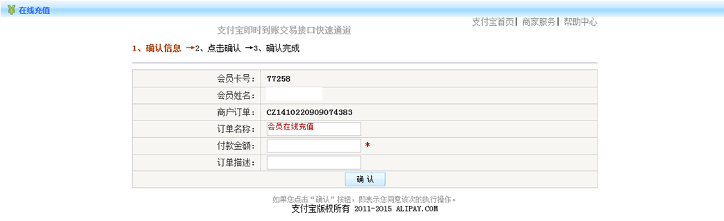 4.訂單名稱(chēng):會(huì)員在線充值