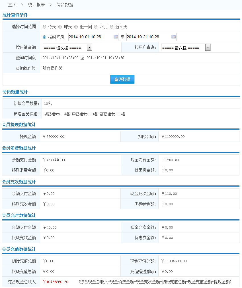 -> 五通一卡通云會員管理系統(tǒng)綜合數(shù)據(jù)統(tǒng)計