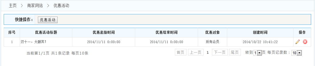 2.編輯:可以對(duì)該優(yōu)惠活動(dòng)修改屬性;可以將該優(yōu)惠活動(dòng)刪除