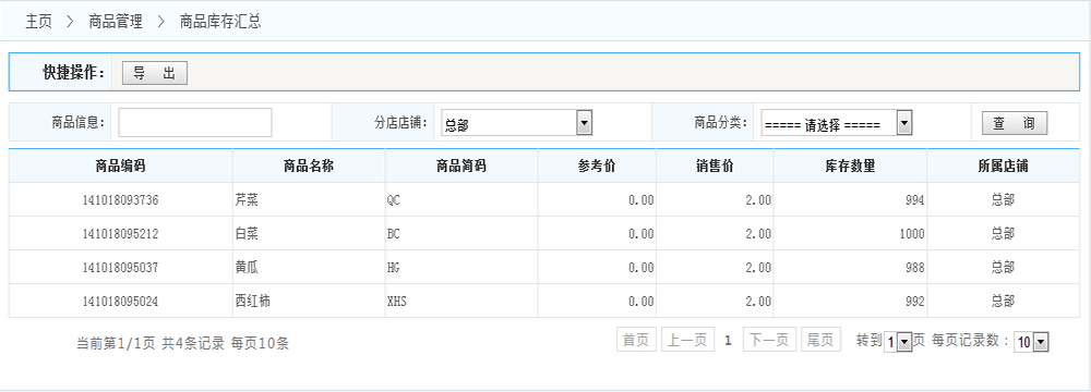 商品庫(kù)存匯總: