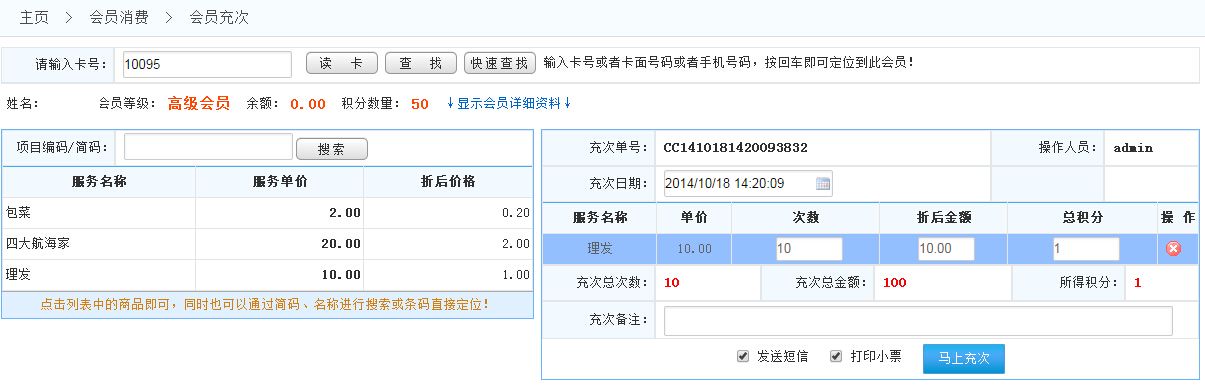給會(huì)員進(jìn)行充次項(xiàng)目 如下圖: