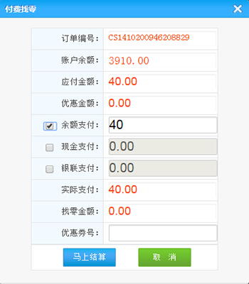 點(diǎn)擊結(jié)算按鈕,將彈出如下結(jié)算頁面